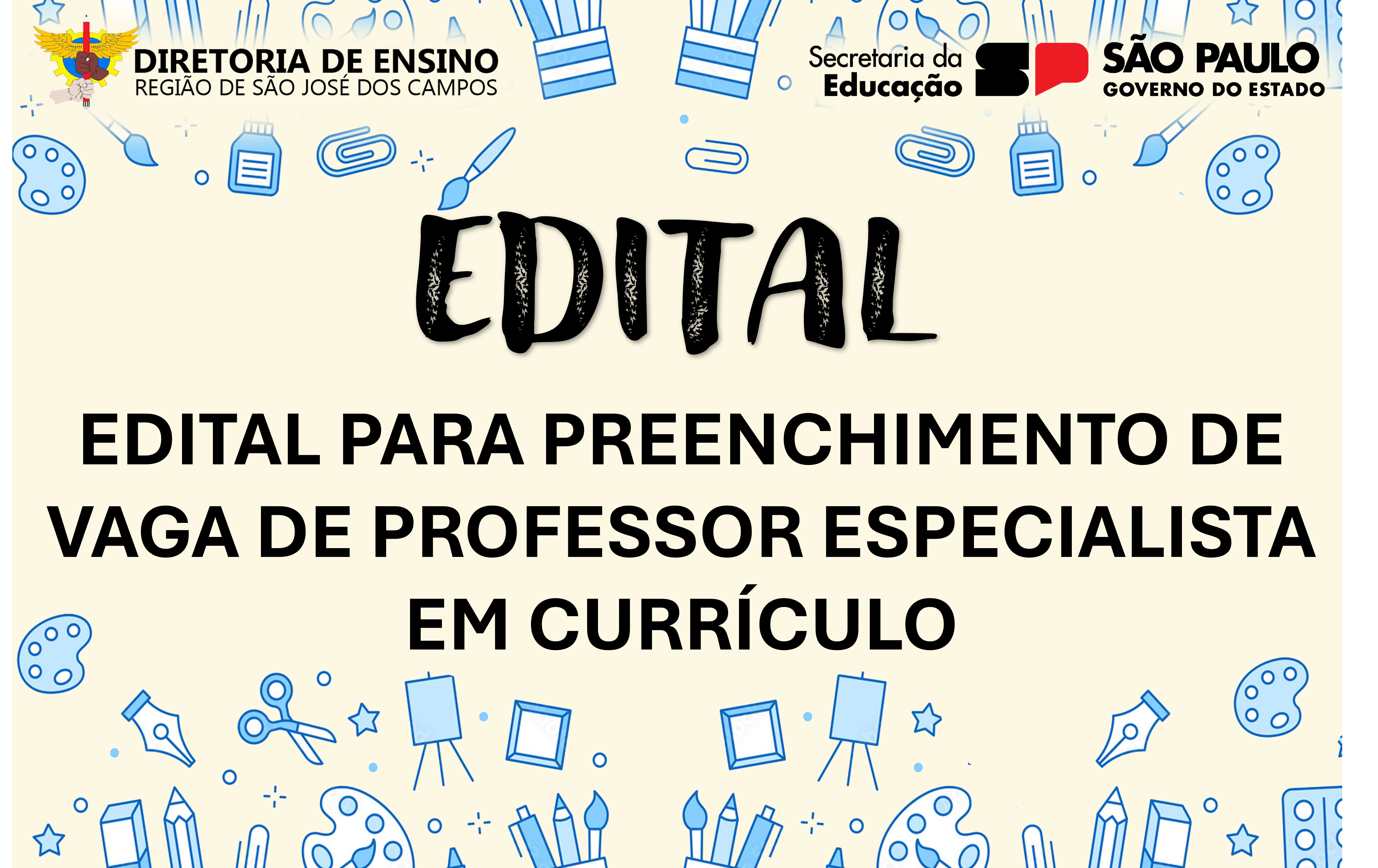 EDITAL DE VICE-DIRETOR- EE Prof.ª AYR PICANÇO BARBOSA DE ALMEIDA … Leia mais »Comunicado CAA nº 72/ 2025 – Atribuição Itinerário de Formação Técnica Profissional (PRESENCIAL) … Leia mais »RESULTADO DO 1º CREDENCIAMENTO EMERGENCIAL DE 2025, DOCENTES PARA ATUAÇÃO NO PROGRAMA ENSINO INTEGRAL, CONFORME … … Leia mais »Processo Seletivo para Designação de Diretor de Escola / Diretor Escolar – E.E. Professora Ayr … … Leia mais »EDITAL PARA PREENCHIMENTO DE VAGA DE PROFESSOR ESPECIALISTA EM CURRÍCULO … Leia mais »COMUNICADO CAA nº 70 /2025 ASSUNTO: Atendimento Domiciliar … Leia mais » CRONOMETRO Contagem Regressiva × CONTAGEM REGRESSIVA PARA O SAEB 2025! CONTAGEM REGRESSIVA PARA O SARESP 2025!