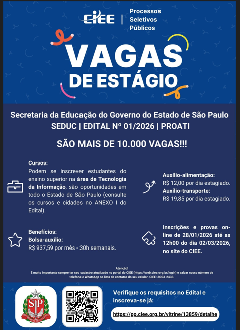 EDITAL SALA DE LEITURA EE ALCEU MAYNARD ARAUJO PROF … Leia mais »EDITAL SALA DE LEITURA – E.E. MARIA FERREIRA SONNEWEND … Leia mais »EDITAL 001/2026 – PROCESSO SELETIVO PARA ATRIBUIÇÃO DE AULAS de POC – PROFESSOR ORIENTADOR DE … … Leia mais »EDITAL DE SALA DE LEITURA – EE Maj. Av. José Mariotto Ferreira … Leia mais »CAA nº13/2026 -Atribuição Professor Tutor Anos Finais … Leia mais »PROCESSO SELETIVO PARA ATUAÇÃO NO PROGRAMA SALA DE LEITURA 2026 – E.E. EUCLIDES BUENO MIRAGAIA … Leia mais » × AVISO IMPORTANTE